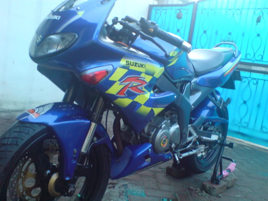motor fxr150 taon 2003 sudah di modifikasi dengan menggunakan shock depan upside down tzr125 (plus 1 new seal sok), double disc brake, velg suzuki bandit400 dan ban tapak lebar battlax 120-70/17 dpn, 150-70/17 blkg, km mash 15rban, surat2 lengkap dan harga 21jt (nego), mesin benar2 halus dan standar..(kata temen gw)..klo ga percaya bisa dateng langsung ke rumah denger suara (msh kata temen gw)...